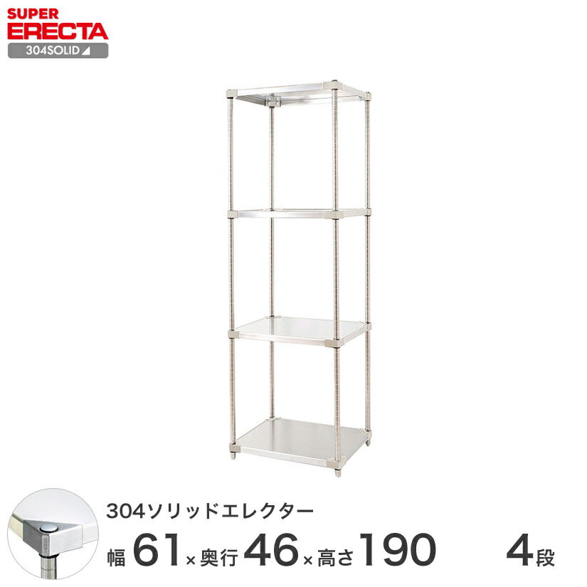 【送料無料】 エレクター ERECTA 304ソリッドエレクター シルバー ステンレスラック ステンレス製 ステンレス棚 什器 厨房 メタルシェルフ ステンレスシェルフ ワイヤーラック 収納ラック 業務用 オフィス 会社 幅60×奥行45×高さ190 4段 MSS610SPS1900W4
