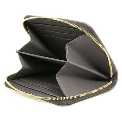 ラウンドファスナーで間口が大きく開くので使い勝手が良く、中央に仕切りがあるのでカードやコイン、鍵などの収納にも便利です。