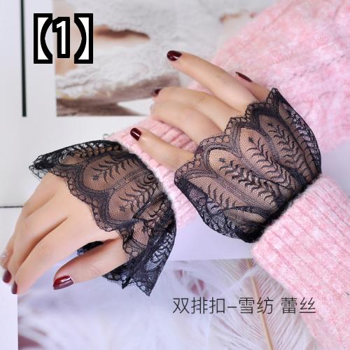 付け袖 レディース 秋冬 シフォン レース コットン 袖口 韓国 短い かわいい 白 黒 重ね着 アクセサリー