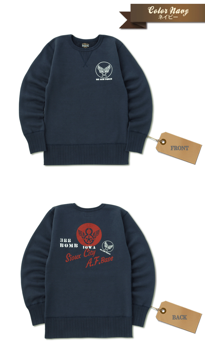 1942年に創設したアメリカ空軍、マイティ・エイスのシンボルマークを アレンジし、エイトジーオリジナルのスウェットにプリントしました。