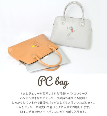 details トムとジェリーが型押しされた可愛いパソコンケース ハンドル付きなのでテレワークの持ち運びにも便利! しっかりしているので普段のバッグとしてもお使いいただけます。